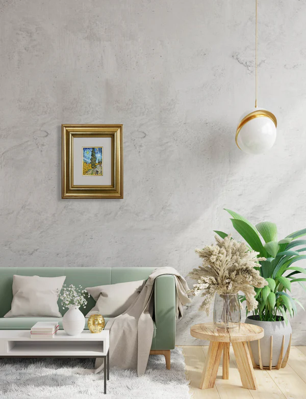 Our micro-mosaic recreation offers a distinctive way to experience this evocative night scene. By translating Van Gogh’s rhythmic, swirling lines and his contrasting palette of deep ochres and cool cyans into thousands of hand-cut Smalti glass elements, we have created a piece that feels remarkably alive. The mosaic medium adds a physical depth to the dark silhouette of the cypress and the glowing celestial bodies, turning a moment of twilight contemplation into a rich, three-dimensional masterpiece defined by its intense pigment and texture.